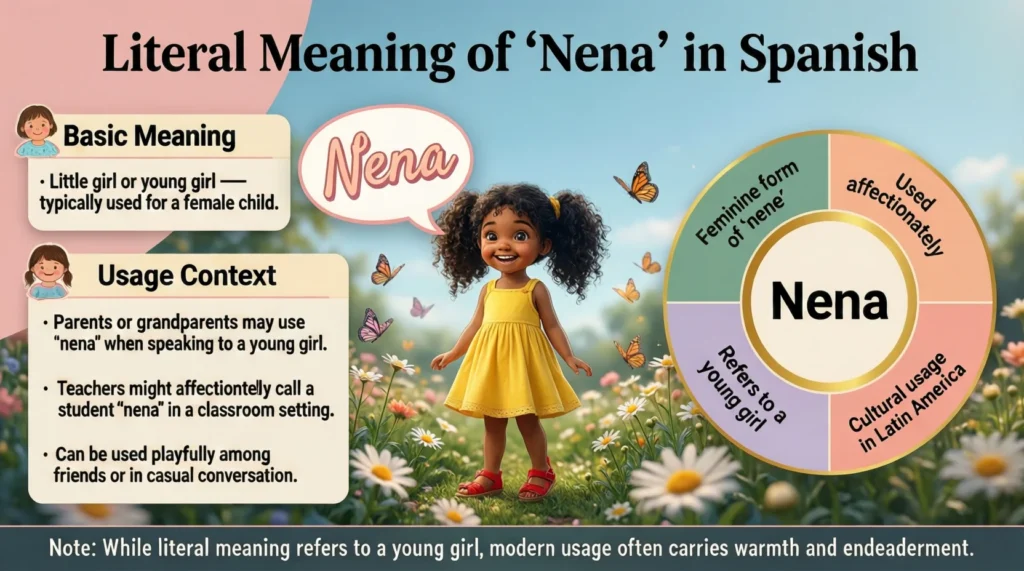 In this full article you will learn the literal meaning of nena how it is used in everyday conversation cultural nuances across Spanish speaking countries when it is affectionate and when it should be avoided. By the end you will clearly understand how nena works in real Spanish.