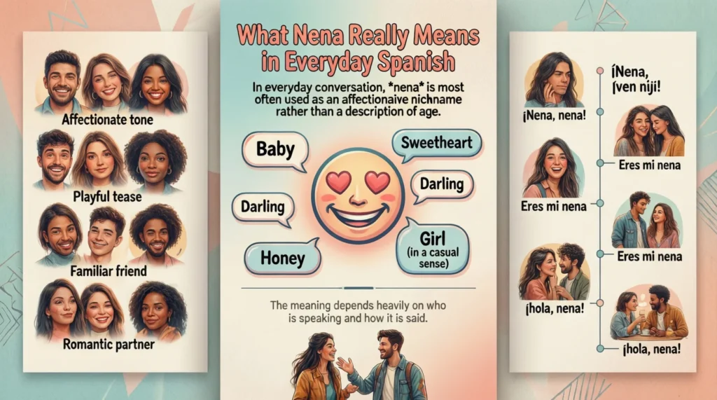 If you have ever heard Spanish speakers use the word nena you may have wondered what does nena mean in Spanish and it is romantic friendly or even offensive. This short word carries different meanings depending on context tone and relationship between speakers which makes it especially interesting for language learners.